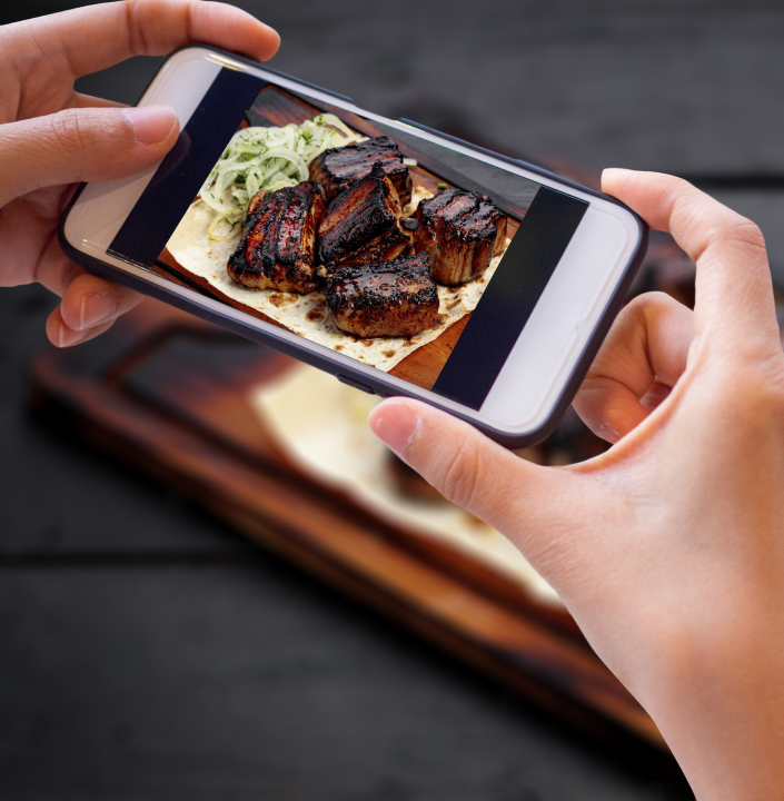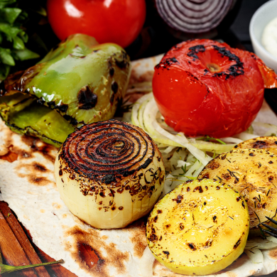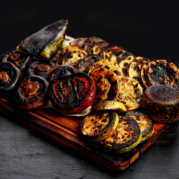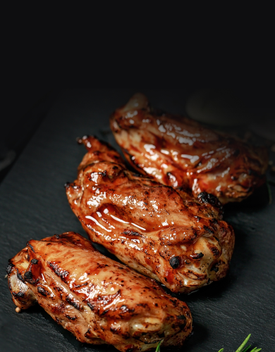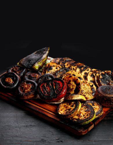Наши блюда готовятся на профессиональном мангале. Только на берёзовых углях. В процессе жарки некоторые кусочки всегда отмечаются огнём в виде поджаристых пятен. Вкусное мясо не может быть равномерно глянцевым. Посмотрите фотографии на нашем сайте. Мы их специально не обрабатываем, чтобы наглядно показать, как должен выглядеть настоящий вкусный и сочный шашлык.